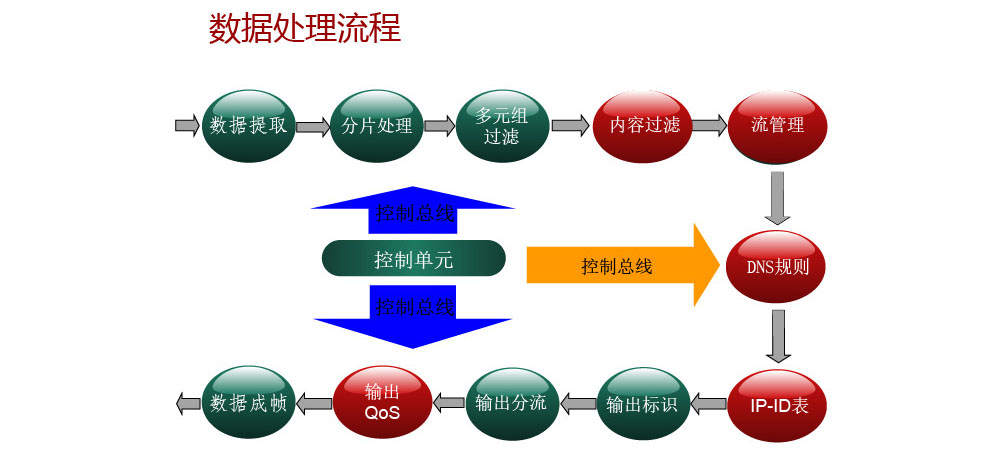 在整個處理流程中,數據提取針對不同的鏈路執行不同的功能,如普通以太網采用PHY芯片完成此功能,而POS和WAN則需要Framer。多元組過濾和內容過濾有軟件和硬件兩種處理方式。