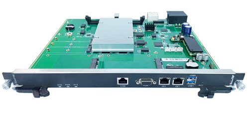 ATCA-ICP1008計算板板載兩通道RDMIM DDR4內存插槽(支持ECC),最大支持64GB內存。板載存儲提供1個NVMe M.2高速固態(tài)硬盤接口和4個硬盤擴充接口(2個SATA M.2接口和2個SATA SSD接口),最大支持存儲容量可達32TB以上。對外可提供豐富的接口:背板提供2路10G XAUI Fabric接口、2路10/100/1000 Base-T Base接口、2路IPMI接口,前面板提供2個10/100/1000BASE-T管理口(業(yè)務口和維護口)、1個VGA接口、1個RS232串口和2個USB 3.0接口(兼容2.0)。